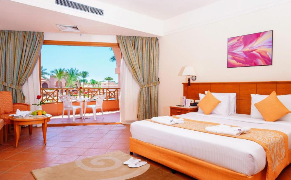 Hotel Information:At Charmillion Gardens Aqua Park, you can have it all. Set on the beach in scenic Nabq Bay, this five-star resort has everything you need for the family holiday of a lifetime. If a family that plays together, stays together, then you’ll be joint at the hip at this hotel. Spend the day at the aqua park whooshing down the Space Boat Slide or chasing waves on the beach – just a stone’s throw from the resort. Little ones will love the kids’ club, where they can hop into a game of tennis or football, play indoors, or make new pals at the mini-disco. The adults haven’t been forgotten here – why not slip off to the spa for a much needed pamper sesh , or catch up on your reading by the pool? Meals are a cinch here, too. The main restaurant serves breakfast, lunch, and dinner buffet-style, so you can graze on your favourite international dishes at your leisure. For all-inclusive guests, the hotel offers a ‘3-in-1’ dine around option – giving you access to five à la carte restaurants across the whole Charmillion resort. In the mood for a night cap? There are four bars on-site to take advantage of, whether you fancy a beach-side cocktail or a glass of wine in the lounge. With something for everyone at Charmillion Gardens Aquapark, all you need to think about is making memories.
