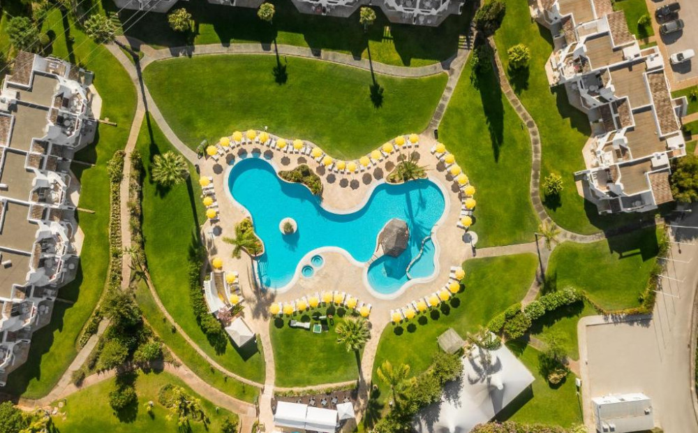Call now on 0203 474 0010Set in lush landscaped gardens just five minutes’ drive from Albufeira’s buzzing town centre, this hotel is a peaceful base on Portugal’s Algarve coast. Hidden away amongst pine, olive, and almond trees, it’s a quiet escape close to golden beaches and lively attractions. There’s plenty here to keep all ages entertained. Four outdoor pools, mini golf, a gym, and a kids’ club (open in high season) mean you can be as active or relaxed as you like. Hidden walking trails wind through the gardens, and little ones will love the adventure-filled play areas. For the ultimate switch-off, massages are also available to book on-site. Albufeira is a town with two moods. By day, it’s all sweeping beaches and dramatic cliffs. By night, its restaurants, bars, and clubs. Head just 10 minutes by car to the Old Town or explore the coastline’s tucked-away coves. From classic Portuguese flavours to poolside burgers, dining here is delightfully varied. The main Alfarroba restaurant serves up local dishes with a modern twist, while Casa Azul offers an Italian-inspired menu with stunning views. There are also two laid-back bars by the pools serving snacks, light bites.