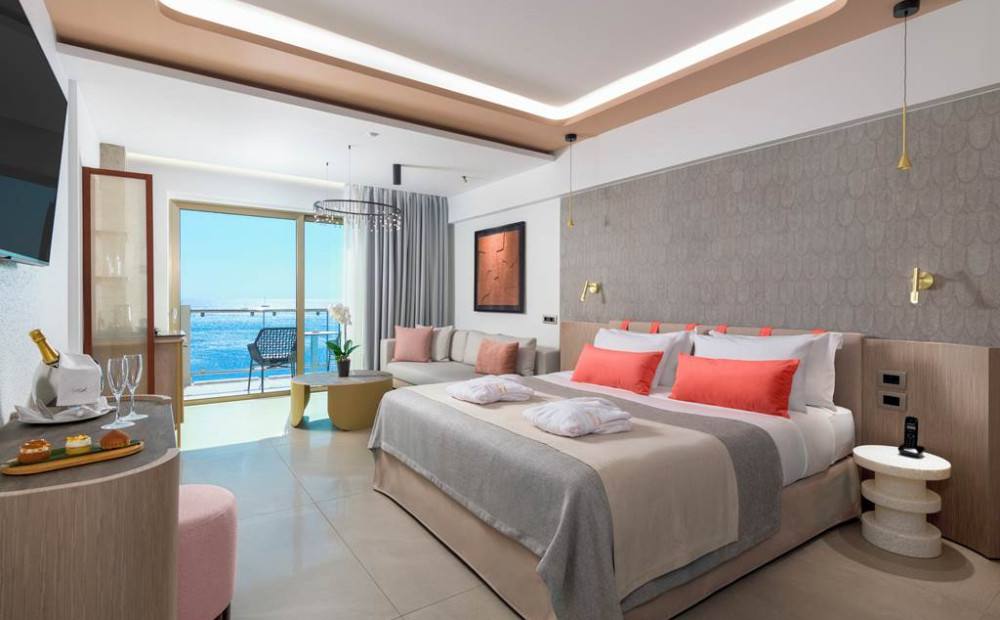 Hotel InformationExperience true luxury as you step into the chic modern Elysium Resort & Spa which illustrates sophistication and splendour, with its grand public areas complimented by its unique minimalist style you will be blown away from the moment you arrive. Enjoy gourmet cuisine in the rooftop à la carte restaurant with its panoramic sea views or soak up the pool views from the terrace of the main restaurant. This hotel's lagoon style swimming pool is ideal for a refreshing dip into cool waters and there is also a little pool for the children, but for that extra luxury why not indulge yourself in the spa. On an evening you can enjoy the local nightlife with its choice of bars and restaurants which is just a short taxi ride away in Faliraki resort centre. Along with its beachfront Location, this hotel lets you experience the best that luxury has to offer.