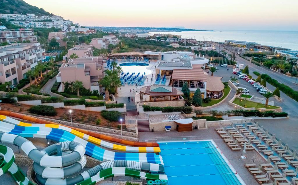 Hotel InformationThe Grand Hotel Holiday Resort sits on a peaceful hillside between the bustling resorts of Hersonissos and Stalis. Guests will appreciate the excellent pool areas, ranging from an action-packed waterpark suited to families, to a more chilled out adults only relaxation pool for couples looking to get away from it all. There’s something for everyone here including a number of restaurants serving up sumptuous buffets and à la carte specialities and a variety of rooms to suit all party sizes too.