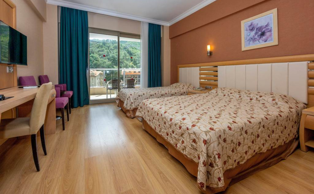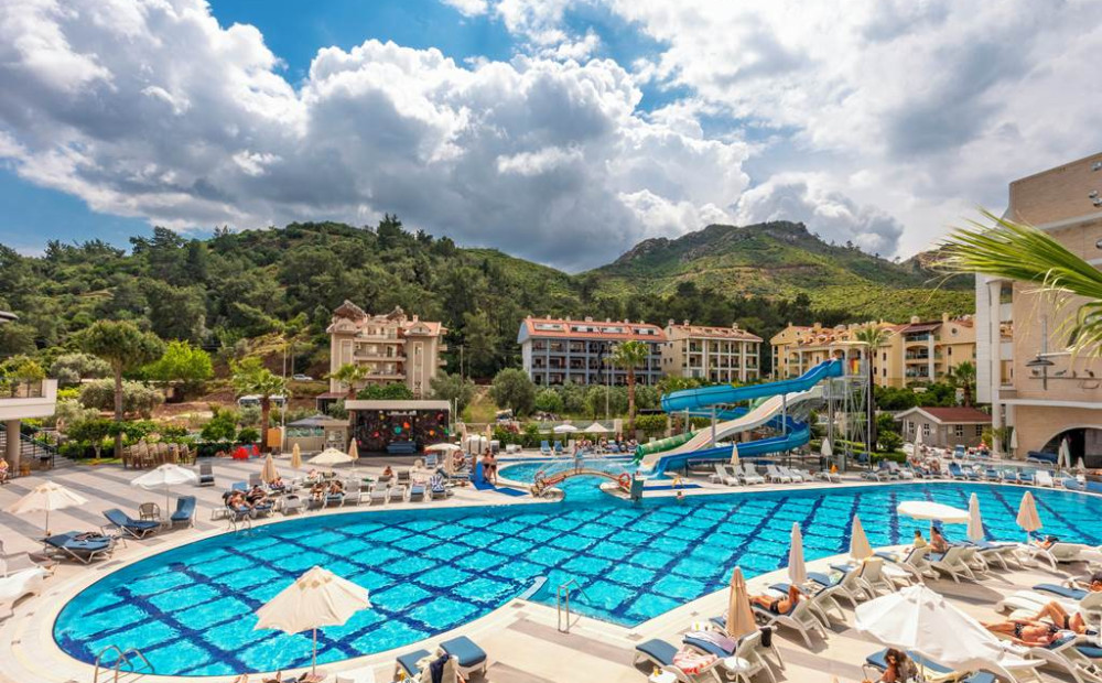 Call now on 0203 474 0010-Hotel Information- Located at the edge of Marmaris and close to the beach, the Grand Pasa is surrounded by a green pine forest and is a great All Inclusive option. The hotel has a traditional yet modern interior and offers a wide range of facilities including an outdoor pool with waterslides, a relaxing spa area and a selection of bars and restaurants. This is a good choice for a relaxing holiday not too far from the hustle and bustle of Marmaris!