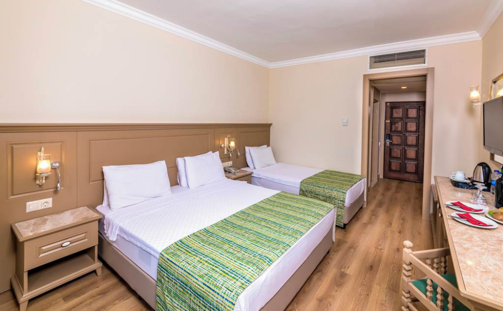 Call now on 0203 474 0010-Hotel Information- Looking out onto the stunning Marmaris Bay, Grand Yazici Club Marmaris Palace sits within lush pine forests surrounded by the deep blue sea. Perfect for families, this hotel is well-equipped for those travelling with little ones as it offers a colourful kids' club, pool with slides and adventure play house as well as lots of other fun activities! There's also plenty of facilities for adults in search of relaxation or action. Offering two lovely pool areas, a wooden sunbathing jetty stretching into the sea, a spa centre and tonnes of sports, there is something for everyone at this secluded hotel.