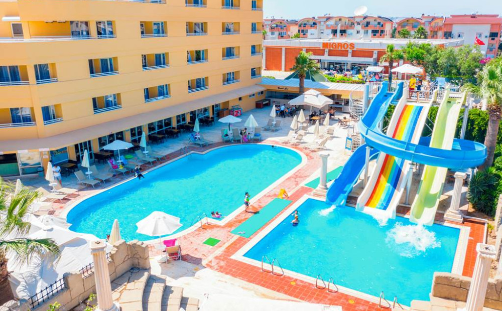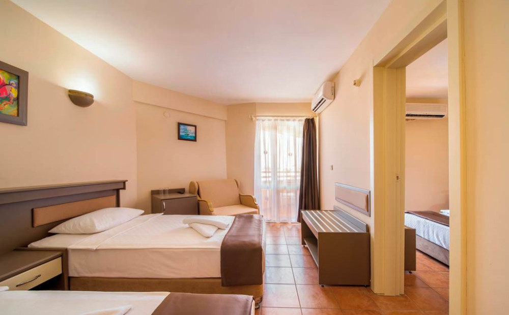 Call now on 0203 474 0010-Hotel Information- Away from all the hustle and bustle of Altinkum, Hotel Esra Family Suites is a Family Favourites property and then some. If being close to the beach, having a fab pool with waterslides and a choice of family suites sounds right up your street, you’ve just found your next holiday base. The fun doesn’t stop there – a kids’ club and playground will also be all yours here! Grown-ups will be delighted to know there’s a soothing spa with a Turkish bath, plus a programme of daily entertainment, buffet restaurant and three bars. Did we mention there’s All Inclusive as standard?