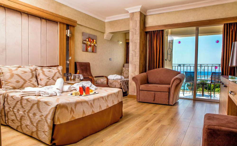 Call now on 0203 474 0010-Hotel Information- With a great location and a fabulous range of facilities, Laur Hotel is the perfect choice for your next Turkish getaway. Enjoy stunning views while relaxing on the private beach, or take a dip in one of the pools. Thrill-seekers can have a splash in the exciting aquapark while those looking for a laid back break can unwind with a pamper in the spa. Rooms are spacious and comfortable so you'll be sure to have an enjoyable stay.