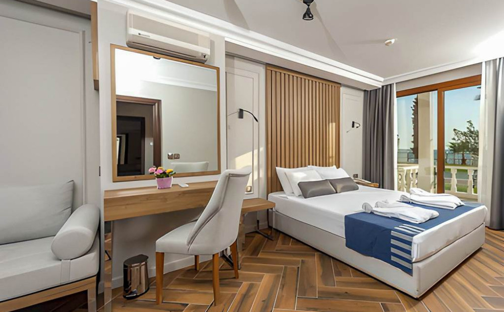 Call now on 0203 474 0010-Hotel Information- With a stunning beachfront location, large pool areas, spacious rooms and All Inclusive as standard, Lucas Didim Resort really has it all. Set among green gardens, with the turquoise waters glistening in the background, this hotel is a perfect choice for a Bodrum break. Families will love the kids’ club, where movie nights and a variety of sports are on offer. But if you’re after a little you-time, head to the spa, equipped with a sauna and Turkish bath. When the hungry appetites start to kick in, enjoy a variety of cuisines at the four restaurants. Then, when it’s time to relax, retreat to your comfortable room.