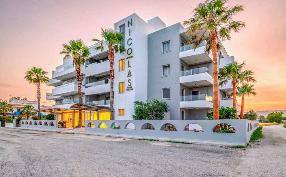 Hotel InformationWith a relaxing pool area and spacious, modern rooms, Nicolas Grand Suites is ideal for a relaxing break in the Greek sunshine. If you're wanting to get out and explore, the hotel is located a short walk from the nearest shingle beach and the vibrant resort of Kardamena. So whether it’s a couples getaway or quality time with friends this hotel is bound to impress.