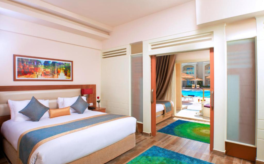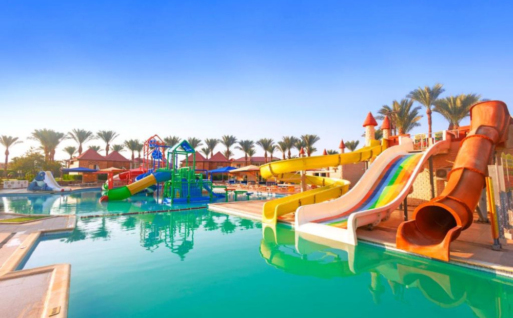 Hotel Information:The Pickalbatros Aqua Park Resort - Hurghada is the place where lively meets laidback. The kids can blow off steam with a ride down the twisting, turning water slides, while you chill out on the welcoming poolside sundeck. You'll have four outdoor pools to choose from when it comes to making a splash, and plenty of activities on dry land to keep you busy, too. Practise your serve on the tennis court or grab the whole gang for a game of volleyball. There's mini golf, table tennis, and a kids' club on hand, too, so you'll never be short on ways to fill your days here. After a busy day you can indulge in a delicious dinner at the Asian, Italian, or Mediterranean restaurants. There's also a food court where you can grab snacks to keep the hunger at bay. There's a couple of bars, too, for everything from afternoon cocktails to an evening tipple.