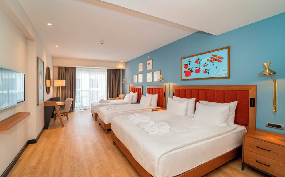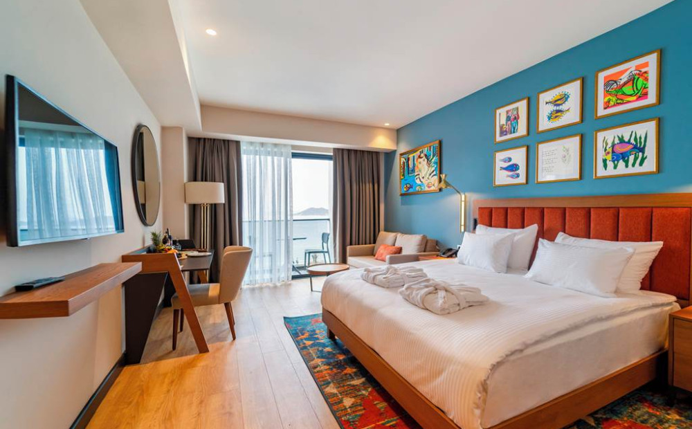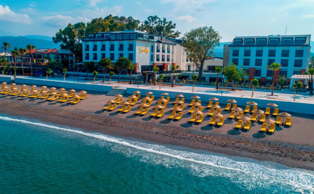 Call now on 0203 474 0010-Hotel Information- With modern décor and luxurious facilities, the Sundia Exclusive by Liberty Fethiye is a real treat for guests of all ages. Stunning scenes await in every corner here, sip on a cocktail whilst taking in the panoramic views of Fethiye bay from the rooftop bar. You can spend days soaking up the sun at the dazzling pool area, or take advantage of the perfect beachfront location with a trip to gorgeous Calis beach. The rooms are beautifully furnished and spacious with upgrades available including rooftop sea view rooms. Great for both couples and families looking for a relaxing Turkish getaway – Sundia Exclusive by Liberty Fethiye ticks all the boxes.